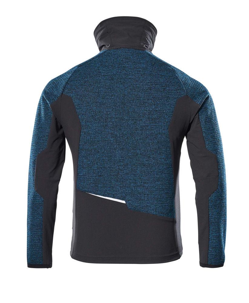 Stickad jacka med blixtlås, mörk petrolium/svart