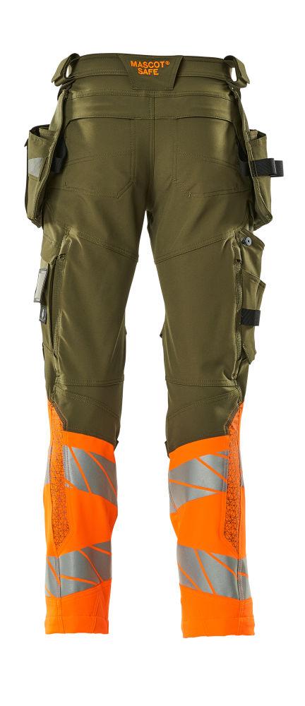 Knäfickor i tvåvägs elastisk CORDURA®: Ger fri rörlighet vid knästående arbete och möjliggör justerbar placering av knäskydden.