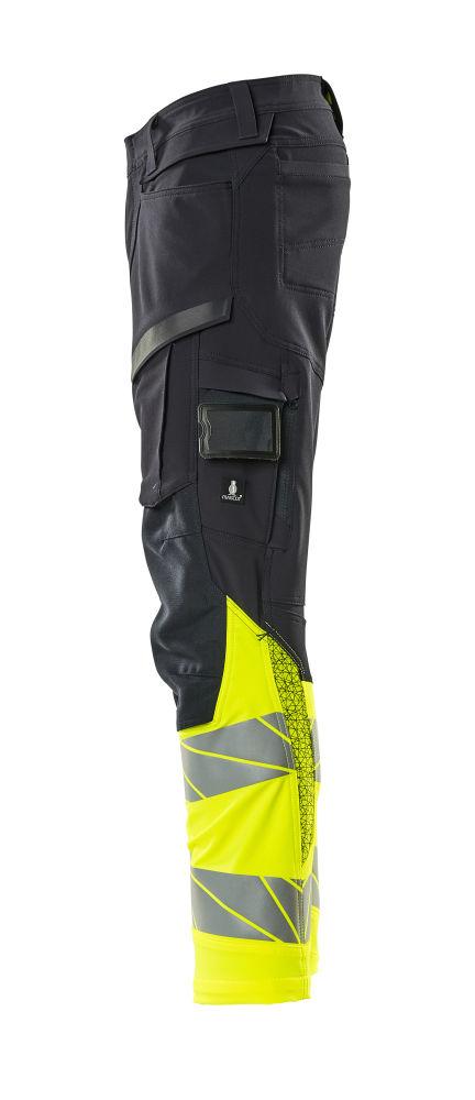 Justerbara knäfickor i CORDURA® (1000 D): Ger optimal placering av knäskydd och extra rörelsefrihet vid knästående arbete.