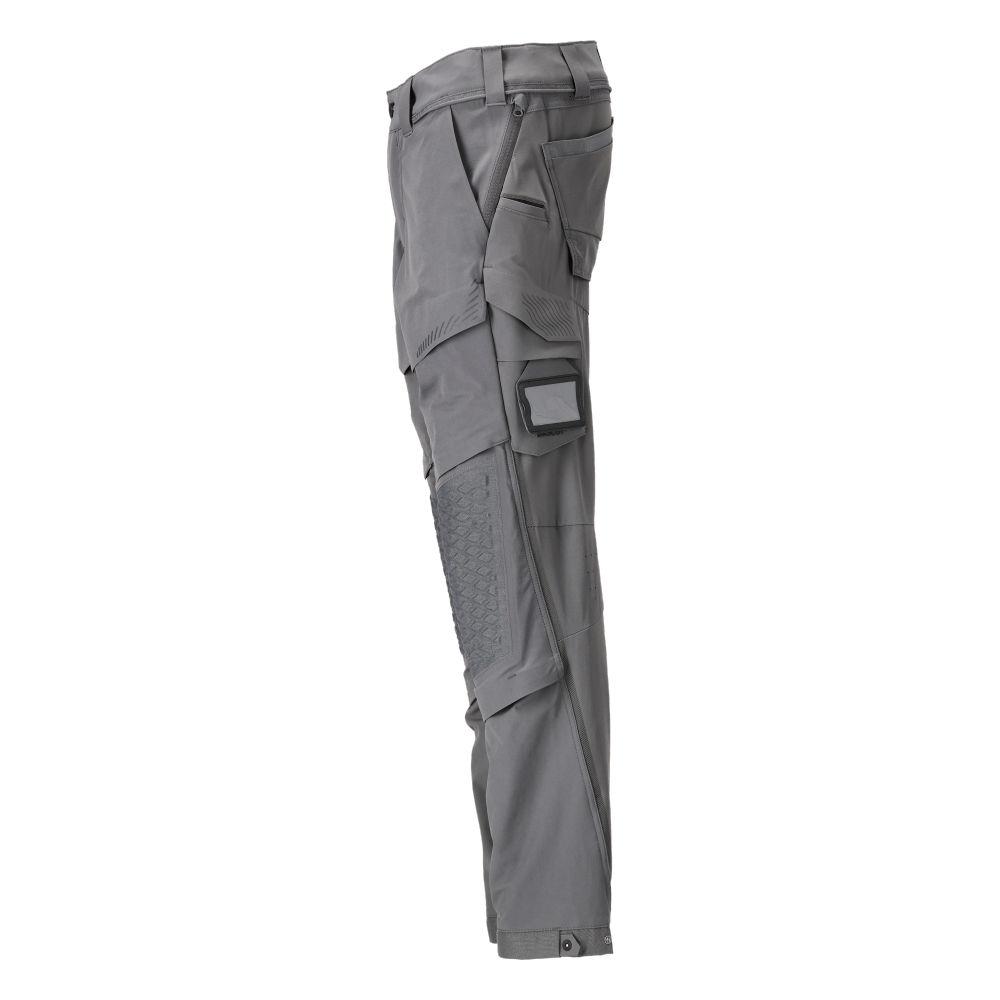 Ergonomisk design: Förböjda ben och smart placering av fickor för rörelsefrihet och smidig åtkomst till dina verktyg.