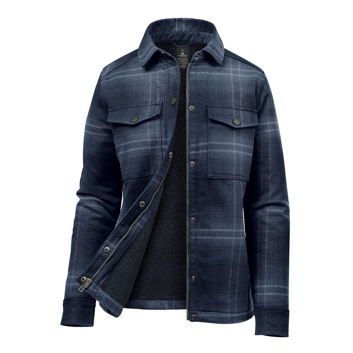 Vikt: (Yttertyg) 60 % bomull/40 % återvunnen polyester, garnfärgad twillrutig, 9,38 oz/yd² (USA) / 318 g/m² (CDN); (Foder) 100 % återvunnen polyester, sherpafleece, 8,26 oz/yd² (USA) / 280 g/m² (CDN)