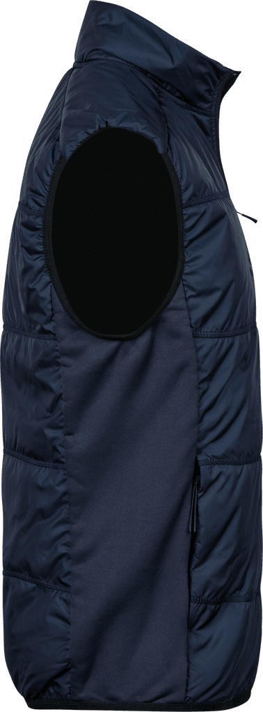 Denna Hybrid-Stretch Bodywarmer är tillverkad av 300T polyestertyg i kombination med stretchiga fleecepaneler. Den är isolerad med premium DuPont™ Sonora Aura vaddering vid kroppen. Bodywarmern har elastiska band i nederkant och ärmhål för en modern look. Den har högkvalitativa SBS-blixtlås, innerficka och två stora dolda framfickor.