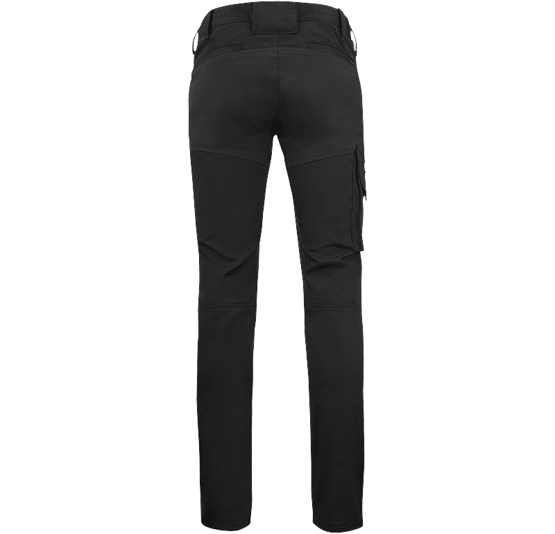 En modern tålig servicebyxa i lättare Stretch Twill med rörlig 4-vägsstretch över bak, fram, stuss samt grenkil. Servicebyxan har en smart benficka med dragkedja, mindre ficka med ficklock med plats för stor telefon samt pennficka på höger ben. Dolda bakfickor i chinosstil. Smal modern siluett – vår byxa med minsta benvidd!
