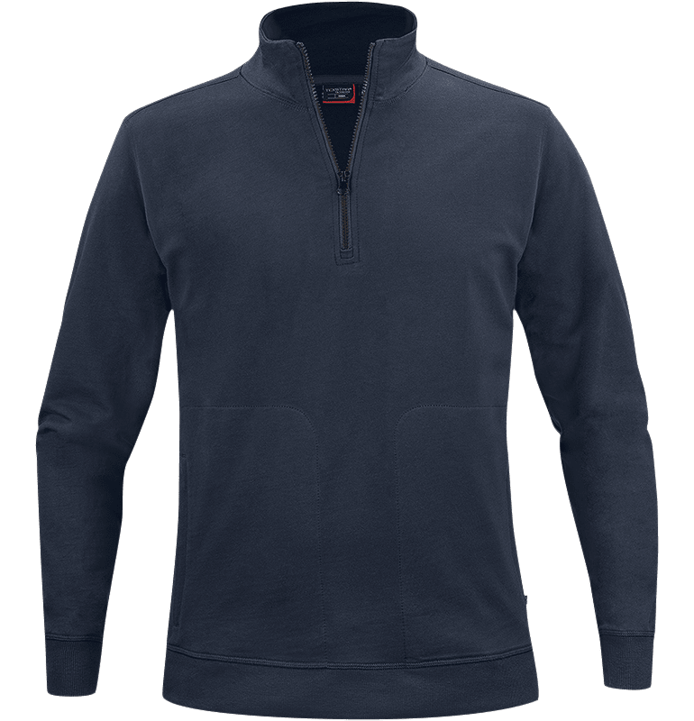 Välkommen säger vi till Crew Half Zip Sweater. Snyggt mysig med kroppsnära passform och en härligt hög krage med dragkedja. Passar både henne och honom, fickor i sidorna med dolda blixtlås. Härligt luftig med French Terry på insidan och färgmatchade muddar och band i nacken – en tröja som sitter snyggt.